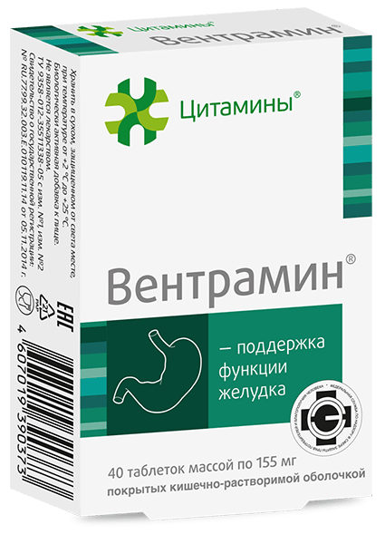 Вентрамин рекомендуется принимать по 1-3 таблетки за 10–15 минут до еды 2-3 раза в день в течение 10-15 дней. Повторный курс через 3-6 месяцев. Вентрамин не имеет противопоказаний и может использоваться как самостоятельно, так и в рамках комплексной терапии.